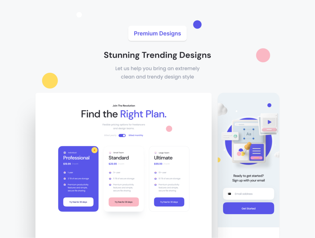 This package includes a responsive and fully animated landing page template with 24 sections. We've intentionally added a lot of different content to maximize the number of layout options. Drag, drop, and mix different parts to quickly build your landing page in a matter of minutes.